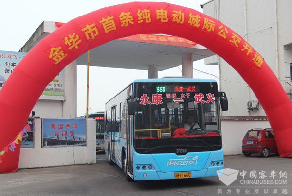 2016年8月22日早上6点,第一辆从永康开往武义的纯电动城际公交车,缓缓驶出永康客运西站。