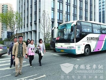 与此同时,交运温馨巴士工作人员也走上街头,将礼让斑马线宣传标识赠送给私家车主,倡导他们礼让行人、文明行车。据悉,温馨巴士自2015年3月就开展了礼让斑马线活动,该公司通过内部巡查、诚信考核、积分奖惩以及市民网络曝光平台等多种方式引导公交驾驶员礼让斑马线。