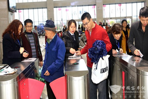 在售票大厅内看到,10台全新的自助售票取票机和3台线路、票价查询机正在运行。自助售票、取票机,支持网络购票取票和银行卡、网银、现金购票。“针对部分老人不会使用自助购票机,车站专门安排工作人员提供帮助。除自助售票,还有15个人工售票窗口同时对外售票。”廖长寿介绍说。