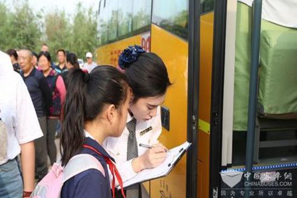 5月2日早上6时,66辆交运温馨校车相继出发驶向城阳区所辖5个街道,开始了专业校车运行的第一天。6点15分左右,遨游6号线校车到达苇山站,40多名学生早已在站点等候,随车照管员在确认学生姓名之后,逐一安排学生座位。记者登上一辆大鼻子校车,车上座无虚席。不少学生坦言以前坐过校车,但是第一次坐大鼻子校车。在赵哥庄站点,城阳五中初二十班王如霏是第一个登上校车的学生,“今天第一次坐大鼻子校车,很准时,我妈把我送到站点就走了。”
