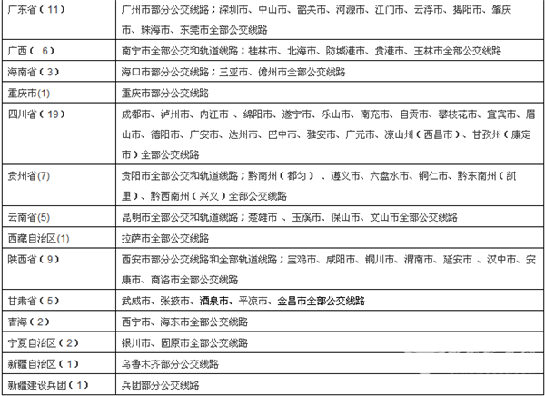 全国交通一卡通互联互通城市名单发布(2017年度)