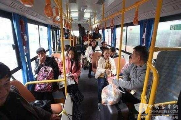 不到两分钟,记者看到车上的座位满了,还有人拉着扶手站在车厢内。“以前的班车不能超过28人,现在是公交车,座位满了,还可以站在车厢内。”林先生说,他有点事先坐这趟走。