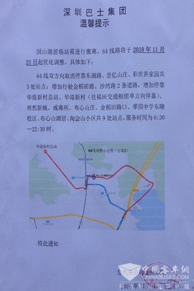 最后,在收集民意之后,深圳市交通运输委员会罗湖交通运输局发布64路公交线路调整的最终方案。