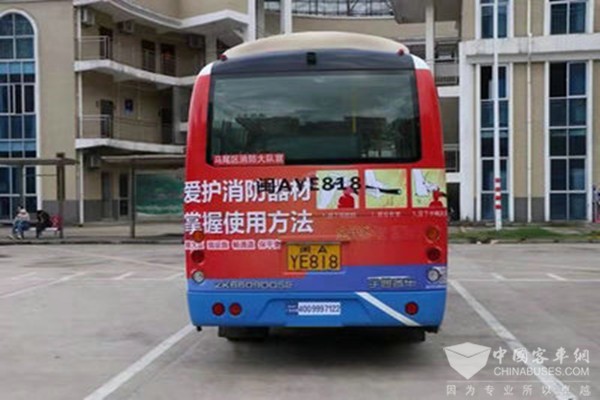 该车运行区间为快安公交总站到福州保税区站,途经19个站点,线路贯穿了马尾区人员密集的住宅、商业聚集区域,实现了消防宣传重点类别全覆盖。这些消防宣传主题公交车给人以强烈的视觉冲击,吸引了众多市民观看,起到良好的提示和宣传教育作用。