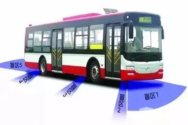 盲区一:尽管现在公交车的前风挡玻璃视野相对开阔,但是车头下方一米左右的范围内仍然存在盲区,1.2米以下的儿童,如果站在车头下方,驾驶员根本看不见。