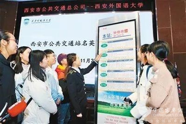 为方便外国游客乘车,新站牌将首次增加英文站名。为确保英文翻译准确,公交总公司特委托西安外国语大学高级翻译学院院长贺莺带领团队负责站名翻译。