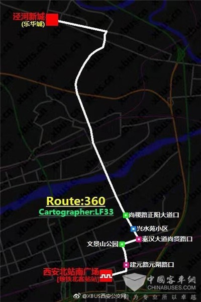 360路线路:由西安北站发车,经元朔路、建元路、尚苑路、秦汉大道、正阳大桥正阳大道、X331县道至泾河新城。