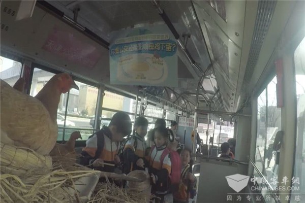 据悉,养鸡公交是天津某公益组织联合支付宝,为呼吁低碳出行的社会公益行为。