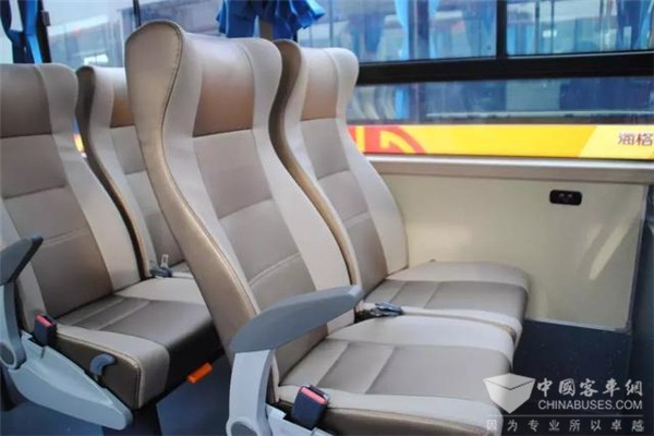 这30台豪华版金龙公交车可谓是公交车中的“佼佼者”,它们除了拥有新宇通12米纯电动公交车所具备的安全性、舒适性功能外,还有复古典雅的外型、司机驾驶室全包围、更加舒适的仿皮面料靠背可调节的“航空坐椅”,这些,绝对是区别于其它公交车的一大亮点。