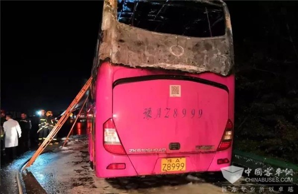 2019年3月22日19时15分许,湖南长张高速公路益常段K119处由西往东方向(常德市境内)发生一起旅游客车(实载56人,车牌号:豫AZ8999,机动车所有人为河南迅驰汽车旅游服务有限公司)突然起火事故,初步核实26人死亡,另有30人送医治疗。