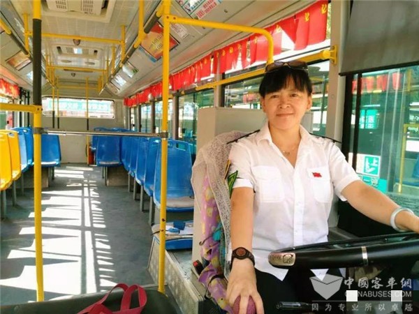 刘丽岩与她驾驶的42路公交车