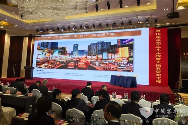 颁奖仪式现场大屏展示广州BRT项目