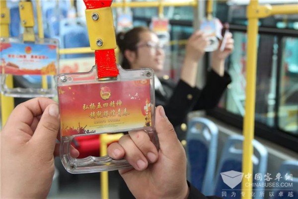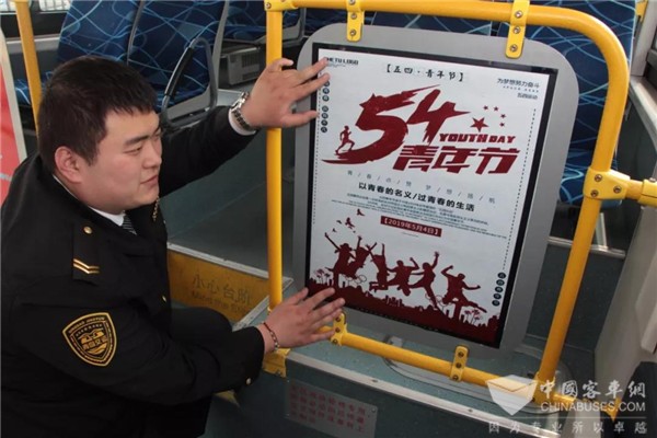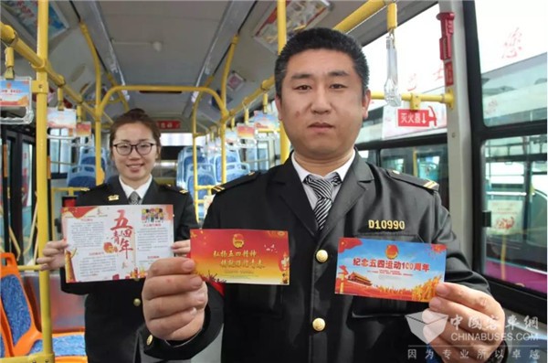 “‘五四’青年节是属于年轻人的节日,希望通过这样的形式,让年轻人了解历史,传承‘五四’精神。”交运温馨巴士盛达分公司王伟介绍,主题车厢的内容都是由90后的青年团员们设计、制作,希望借助公交车流动性强的特点,让更多青年人传承“五四”精神。