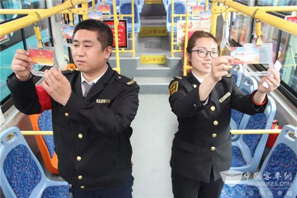 “今年是五四运动100周年,我们想为乘客们营造出一个有着浓厚爱国主义氛围的公交主题车厢,让乘客们感受车厢文化,感悟五四精神。”交运温馨巴士顺达分公司宣传员宋晓晓说,为了让乘客了解“五四精神”,激发爱国热情,宋晓晓和公司共青团员们自发布置了这个“五四运动100周年”主题车厢。据悉,布置“五四运动”主题车厢不是他们一时心血来潮,每逢纪念日、重大节日,温馨巴士的共青团员都会打造宣传节日文化的主题车厢。