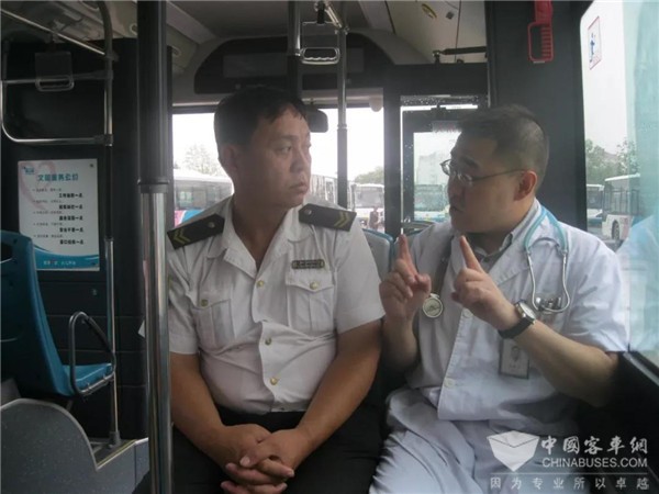 据了解,交运温馨巴士每年都组织公交驾驶员分批次进行全面的身体检查。公司及时统计检查结果,密切关注每一个驾驶员的身体状况,路队工作人员会进行相应的安全叮嘱。每天出车前,驾驶员都会由路队长测量血压,确定血压正常后再上线运营。在保证驾驶员身体健康的同时,也为乘客的安全提供了保障。在本次活动现场还设立了公交驾驶员健康咨询点,王哥庄街道社区卫生服务中心120急救站的医护人员为公交驾驶员们提供健康咨询、免费测量血压等服务,医护人员针对每一位前来咨询的健康问题进行详细的解答,并给出相应的建议。