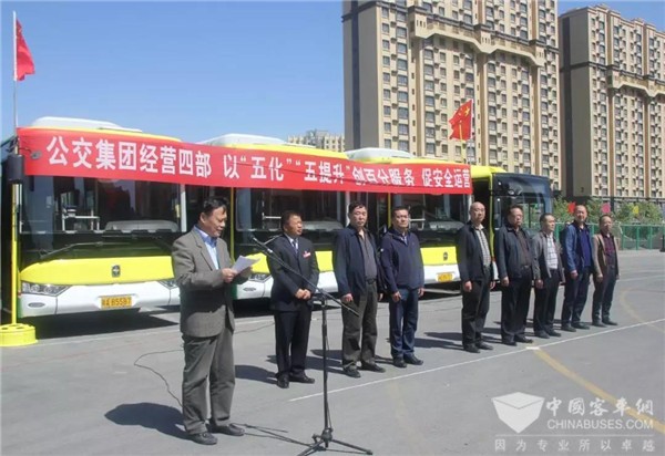 当天,在乌鲁木齐市公共交通集团有限公司(以下简称公交集团)经营四部紫金城停车场,来自公交集团的近百名公交车司机参加了公交集团经营四部开展的“五化”、“五提升”创百分服务促安全运营承诺宣誓仪式,通过开展创百分服务试点活动细化公交车安全驾驶标准。