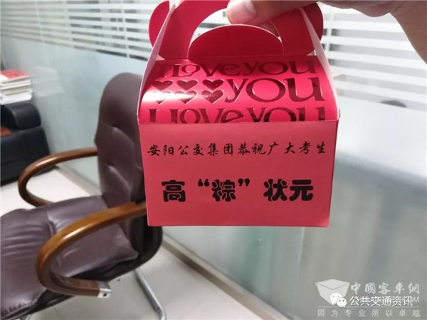 六是为考生及家长送祝福。今年高考恰适端午节,公交集团团委还精心设计了包装精美,寓意高考高“粽”的粽子,在各考点为候考家长及考生送去祝福。