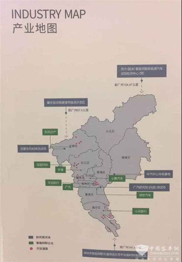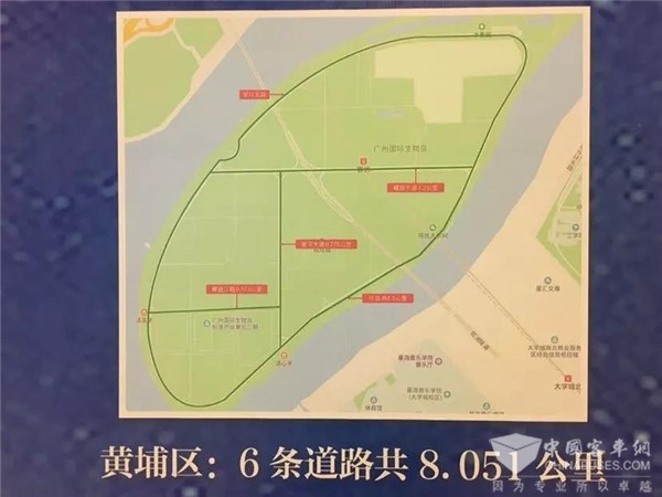 首批智能网联汽车测试开放道路选定在黄埔区、白云区、花都区和南沙区的33条道路共45.6公里路段。