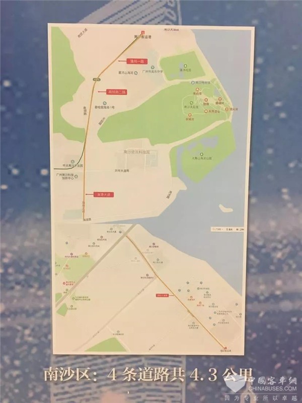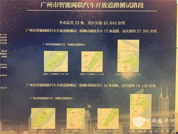 广州市智能网联汽车开放道路测试一级测试路段共17条道路,总长度约27.501公里。