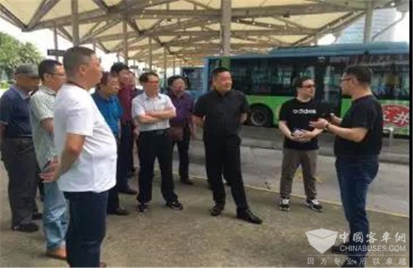 2019年6月18日上午,大连公交考察团一行人到思明公交第一码头站考察参观,集团办公室主任石惠清、思明公交公司党总支书记邱奕鹏和思明公司第二车队队长阮连成陪同考察。
