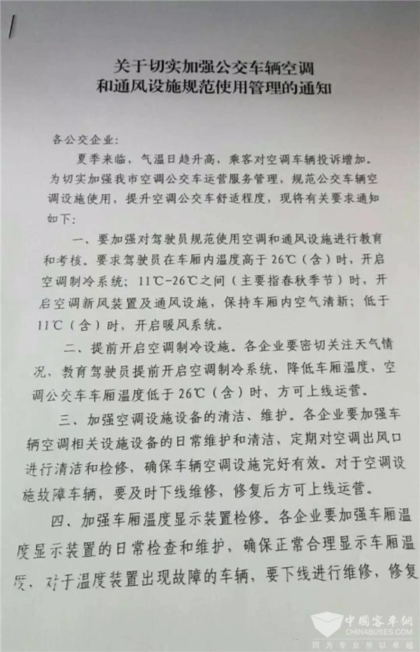 针对市民的疑问,沈阳市交通局近日对各公交企业再次下发了文件《关于切实加强公交车辆空调和通风设施规范使用管理的通知》,全文如下: