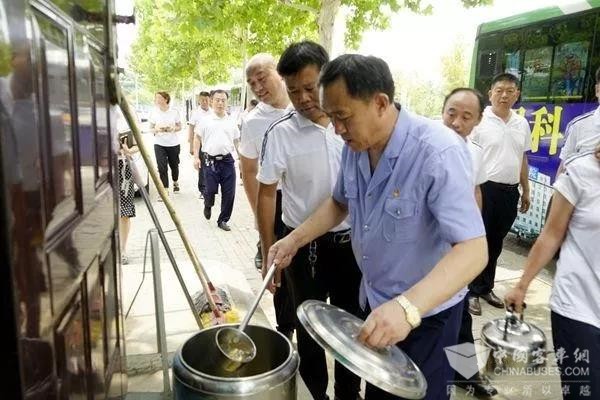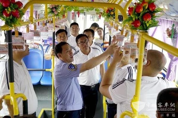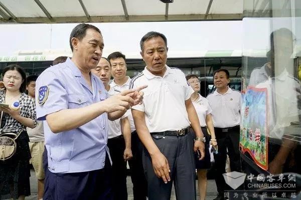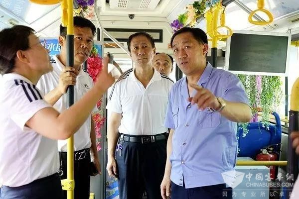 6个公交场站、21条公交线路,8个主业单位一把手在总公司总经理杜海潮,副总经理尚继迎、王洪斌的带领下,临时组成检查小组,在无准备、无通知的情况下对“文化进车厢”工作进行突击式复检。2019年7月16日上午,伴随着高温炎热天气,一场“出出汗”式的抽查工作在邯郸市公交总公司展开。