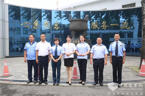活动最后,中国交通职工思想政治工作研究会城市公交行业分会秘书长许斌;南京扬子公交客运有限公司党委书记、执行董事康国华;济南公交党委副书记石绍滕,副总经理姜良、谢刚,纪委书记曾繁涛共同上台,与9名宣讲员合影留念。