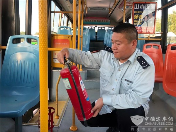 勇救“火人”的韩明炫发车前都会检查消防设备。