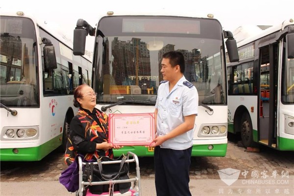 90多岁的“让座奶奶”薛轶雯成为年龄最长的“青岛巴士荣誉乘客”。