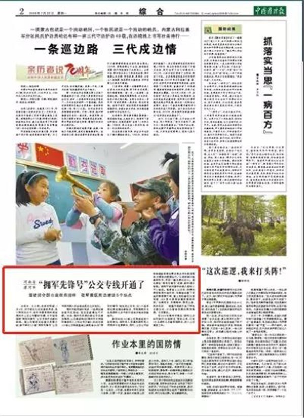 新划定的115路公交线途经多个驻军单位,现役军人军属和退役军人持拥军卡免费乘车,同时,公交公司还将根据驻军单位需求推出专车接送服务,方便官兵便捷出行。“以前进城只能提前约车,来回一趟花费近百元。现在乘坐‘拥军先锋号’进城,既快捷又省钱。”现役干部刘国利的爱人姬冰心开心地说。笔者登上公交车,浓厚的拥军氛围扑面而来:车厢里设置了军地英模画像灯箱、墙上粘贴着征兵宣传画、LED显示屏滚动播放强军标语。“光辉军史、英模精神、强军之路、将帅风采……每趟专线都打造了特色主题文化,只为营造浓厚的拥军氛围。”王克喜说。