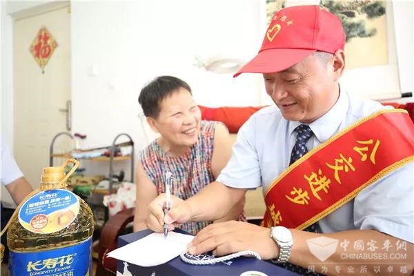 他是一名老公交司机,他是739路线的“敬老服务明星”,他,就是武汉公交集团光谷营运分公司739路公交司机黄忠奎。近日,他迎来了光荣退休的大日子,水蓝路一带的老年乘客自发组织见证这一时刻。武汉公交集团光谷营运分公司珞雄路公交场站内格外热闹。自1987年进入公交,黄忠奎已在公交车上度过了32个春夏秋冬,昨日,是他驾驶工作的最后一天。为了给黄忠奎一个惊喜,也给他的公交生涯画上一个圆满的句号,多年受到黄忠奎帮助的老人们特意在这天下午来到了公交739路始发的珞雄路公交场站。“回来了,回来了,黄师傅回来了!”下午13时许,黄忠奎驾驶的739路公交车缓缓驶入了停车场。多年的细心服务,黄忠奎早已和老人们成为了家人、朋友。听说黄忠奎要退休了,739路老人乘客郭阿姨特地带来了自己亲手包的饺子、王婆婆带来了围巾、家住水蓝郡的罗爹爹也送来了慰问信,还在信中写到:“黄师傅人品高尚,心中装着坐车的老人们。夸他在平时的工作中是敬老明星,服务老人的模范!”对于眼前这突如其来的惊喜,黄忠奎一下子激动的红了眼眶,一个劲儿地说着谢谢。据经常乘坐739路公交车的老人介绍,黄忠奎一直都是他们心中的“敬老服务明星”。739路途经水蓝路东山村、长城别苑、南波湾、锦绣良缘多个老居民小区,老年乘客数量较多,每当有老年乘客乘车时,黄忠奎总是耐心等待,碰到有的老人腿脚不便,黄忠奎也会上前搀一下、扶一把,遇到手里拎着菜篮子、小推车的老年人,他总是会主动将老人扶上车,把他们携带的物品送到座位旁边安置好后,才发动车辆运行。不仅如此,黄忠奎的车厢可以说是“四季如春”:夏天,黄忠奎在车厢里准备了小扇子、清凉油;冬天,黄忠奎的车厢里有暖坐垫、暖扶手。在他的车厢中,还有一个百宝箱,里面常年备有创可贴、购物袋、一次性雨伞、方便钩等物品,以便老人取用。为了给乘客提供更加优质的服务,黄忠奎悉心揣摩老年乘客心理,并总结出自己的方法。即:对待老人乘客要关心、帮助老人要诚心、观察老人要细心、解答老人询问要耐心;对车辆勤检查、勤保养、勤维护、勤保洁;不开带病车、不开怄气车、不开高速车、起步平稳、运行平稳;保证行车安全。其实,不仅是在车厢内,黄忠奎还将这份爱心延续到了车厢外,他与多位老人结对,定期到老人家中进行志愿服务,为行动不便的空巢老人买米、买油,还陪他们聊天,为老人带来欢乐。