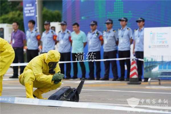 2019年9月5日上午,广州市公安局公共交通分局联合市应急管理局、广州公交集团等相关部门,在天河区环场路公交站场开展2019“保平安、迎大庆”综合应急演练。