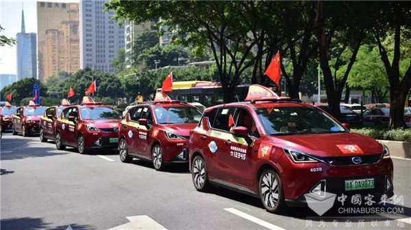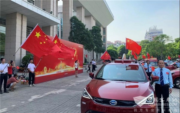 2019年9月25日上午,一支摆放着国旗、车顶国旗飘扬的出租车队伍搭载着广州街坊,从海珠会议文化中心出发,前往广州塔、琶洲展馆、花城广场、海珠广场、越秀公园、中山纪念堂、海珠桥七个羊城经典地标。