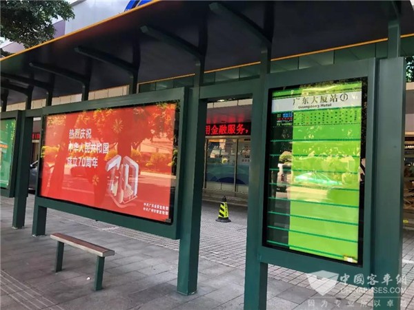 广州公交集团天河客运站、滘口客运站的LED大屏,滚动播放着庆祝新中国成立70周年的公益短片和海报,让南来北往的人们在旅途中也能感受到浓厚的节日气氛。