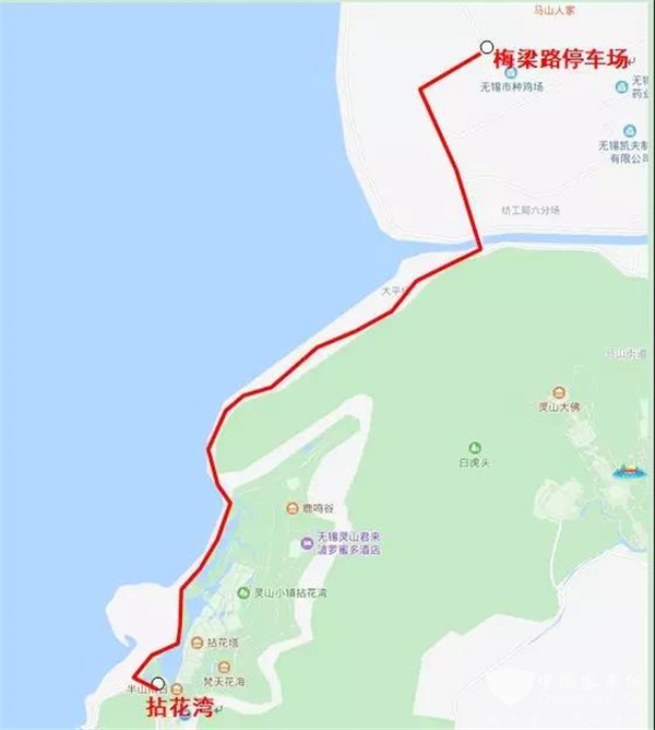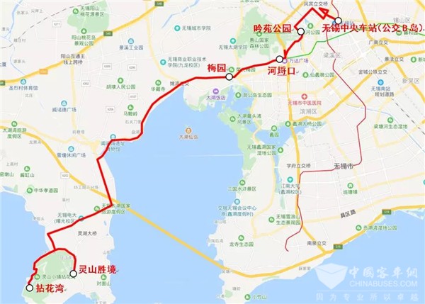 停靠站点:无锡中央车站(公交b岛)、惠通桥、吟苑公园、锡惠公园、河埒口、梅园、拈花湾、灵山胜境。