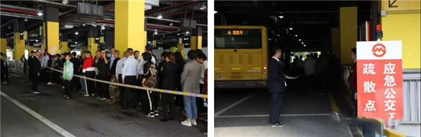 演练内容:轨交11号线突发故障,嘉定新城站有大量乘客滞留,公司启动大客流应急预案,增援车辆进行短驳。