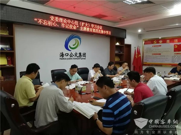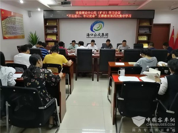 2019年11月5日上午,海口公交集团党委理论学习中心组召开“不忘初心、牢记使命” 主题教育第四次专题集中学习会,会议由集团党委书记、董事长、总经理王燕雄主持,集团党委班子成员、机关党支部全体党员参加。