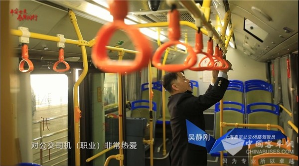 吴静刚2012年8月进入上海嘉定公共交通有限公司(以下简称:嘉定公交),是嘉定68路“双拥”特色线路的一名驾驶员,也是该线路班组长。同时,吴师傅还是一名退伍军人,退伍后辗转来到嘉定北站,成为一名公交司机,这一干就是七年。通过对吴师傅的观察和接触,我们感受一种退伍军人的魅力,执着、坚定而又果断。吴师傅说:“我喜欢开车,也没有其他的特长,发挥自己的光和热,当一名平凡的公交司机服务大众,每天接送乘客上下班等让我有成就感”。由于多年出色的工作表现,吴师傅获得2018年“上海优秀驾驶员奖”。