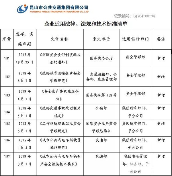 江苏:昆山公交集团开展危险源识别与法律法规适用性评价工作