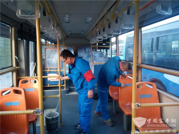 11月18日起,新城分公司马山营运部群策群力,由营运部管理人员带头,对回场车辆一辆一辆检查,发现脏乱差的车辆及时上前对车辆进行清扫清洁。大家上下一心,从内到外对轮毂、车身、车门车窗、地板、座位等彻底进行打扫清洁。