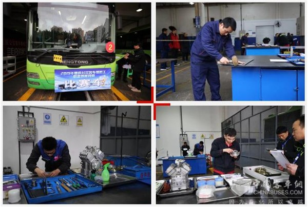 维修工技能竞赛由理论考试和实操两部分组成,其中理论成绩占总成绩30%,实操成绩占70%,共设发动机、转制、传动、电工、空调、铜工、检验六个工种,全面综合考量了参赛选手维修理论基础、公交客车维护保养、故障诊断修理等综合技能。是一次权威性极强、技能性极强、专业性极强的赛事。