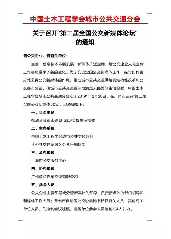 关于召开“第二届全国公交新媒体论坛”的通知