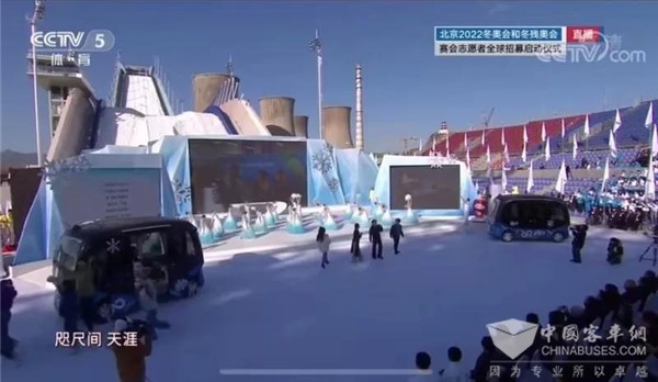 仪式现场星光熠熠,多位明星到场助阵。其中,成龙携手容祖儿等歌手与百名志愿者代表共同演唱冬奥志愿者歌曲《燃烧的雪花》。尤为值得一提的是,成龙等演员嘉宾的出场方式十分吸睛——搭乘金龙阿波龙自动驾驶巴士抵达活动现场。舞台上2辆金龙阿波龙与成龙领衔的表演明星,共同助力活动。这一特别的安排,不仅展现首钢的转型发展成果,更向世界展示了北京2022年冬奥会的“科技冬奥”、“智慧冬奥”的特色。