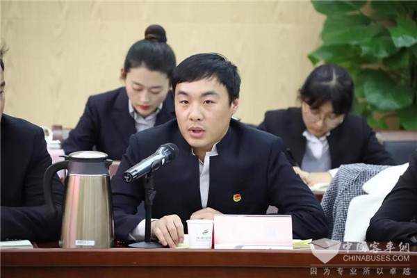 来自客一分公司的团委兼职副书记高国从“落实团中央改革,建设符合群团组织特点、充满生机活力的团干部队伍”方面交流了自己的感受。高国是原客一分公司的一线调度员,在2018年客一分公司团代会中被选举成为了团委兼职副书记,如今成为了一名基层车队团支部书记。他在发言中表达了三个感谢,第一是感谢共青团组织给予了自己身份的转变,从“参与者”成为了“组织者”;第二是感谢共青团组织为自己搭建了展示自我的平台,通过志愿服务展现了公交青年的风采;第三是感谢共青团组织对自己的关心和培养,为自己提供了更广阔的成长空间。