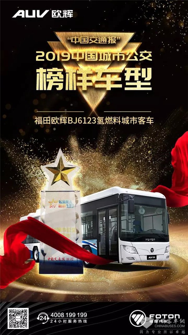 新年辉荣誉!福田欧辉氢燃料城市客车荣获2019年“城市公交榜样车型”称号