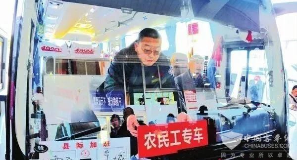 四川南充汽车站针对农民工返乡较为集中的蓬安,以及仪陇县金城镇、马鞍镇等地,开通了农民工专班大巴车。在售票大厅,有“农民工售票窗口”的专门售票通道,志愿者为前来购票的农民工提供咨询等服务;在发车区,部分客车挡风玻璃前放着“农民工专车”牌子,工作人员积极引导农民工乘车返乡。这些专班车实行坐满即走,直接开到镇上,大大方便了农民工返乡。“看到车站专门给我们农民工开专班车,心里暖融融的。”返乡农民工乐呵呵地说。