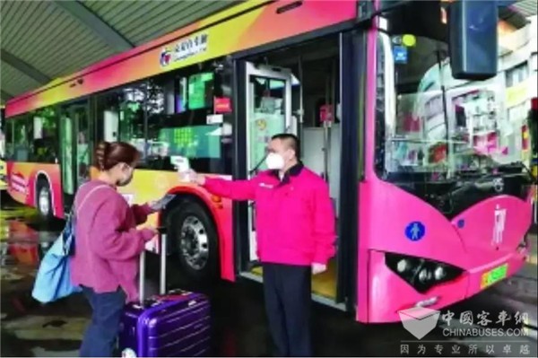 确保从业人员身体健康。公交集团每一位员工上岗前均需要进行体温检测,同时落实从业驾驶员及客运站、公交站场等一线工作人员实行佩戴口罩上岗。