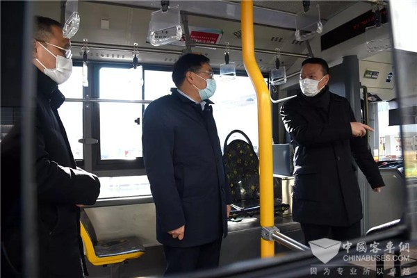 2020年1月31日上午,上海市副市长汤志平、市府副秘书长黄融在市应急局局长马坚泓、市交通委副主任杨小溪,久事集团副总裁李仲秋,久事公交集团党委书记、总经理张必伟及市交通委相关部门负责人的陪同下实地检查指导公交疫情防控工作,进一步提高防控处置实效。