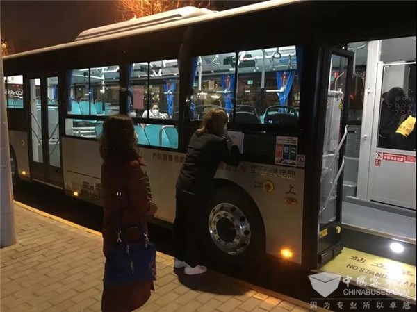 20分钟后,车辆到达医院大门口,乘车医护人员陆续下车,大家没有离开,而是纷纷返回车厢前门与乌少华道别,由衷对公交人的默默付出表示感谢。