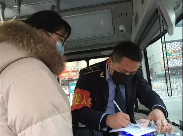 2月4日一大早,驾驶员齐磊和安全员张洁一起对车辆进行消毒,对到来的医护人员进行体温检测和登记,保障医护人员及驾乘人员的安全。今年32岁的齐磊是二环1号线的驾驶员,作为一名积极分子,听到公司准备开通医护专线,他第一时间给车队交了这份请战书,希望能尽自己的一份微薄之力。